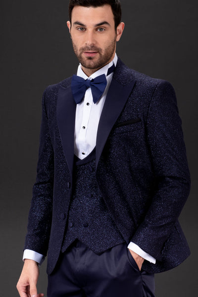 Mehmet Glitter 1 Button Slim Fit Tuxedo Suit, T14-NAVY