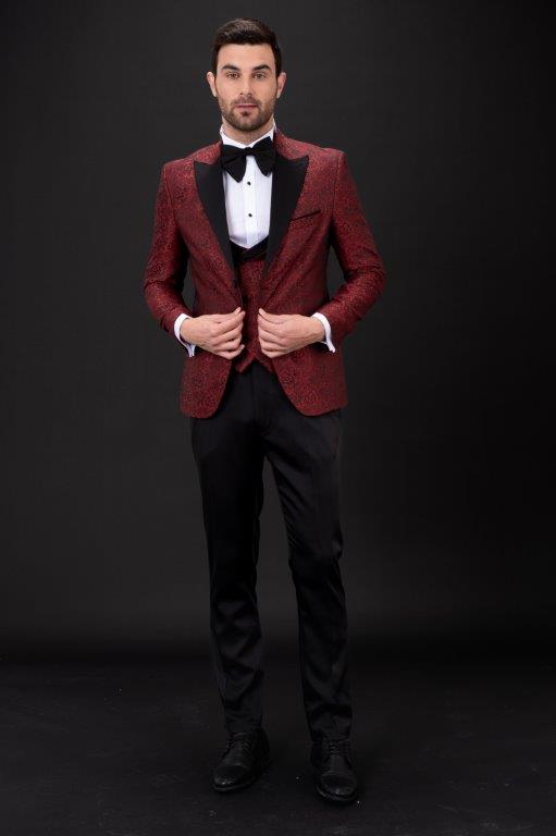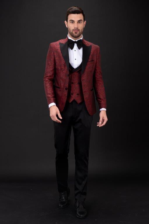 MEHMENT EMIN TEKE/TEKE IN,JACQUARD-1BDBV-TUXEDO SUITS-T11-BURGUNDY