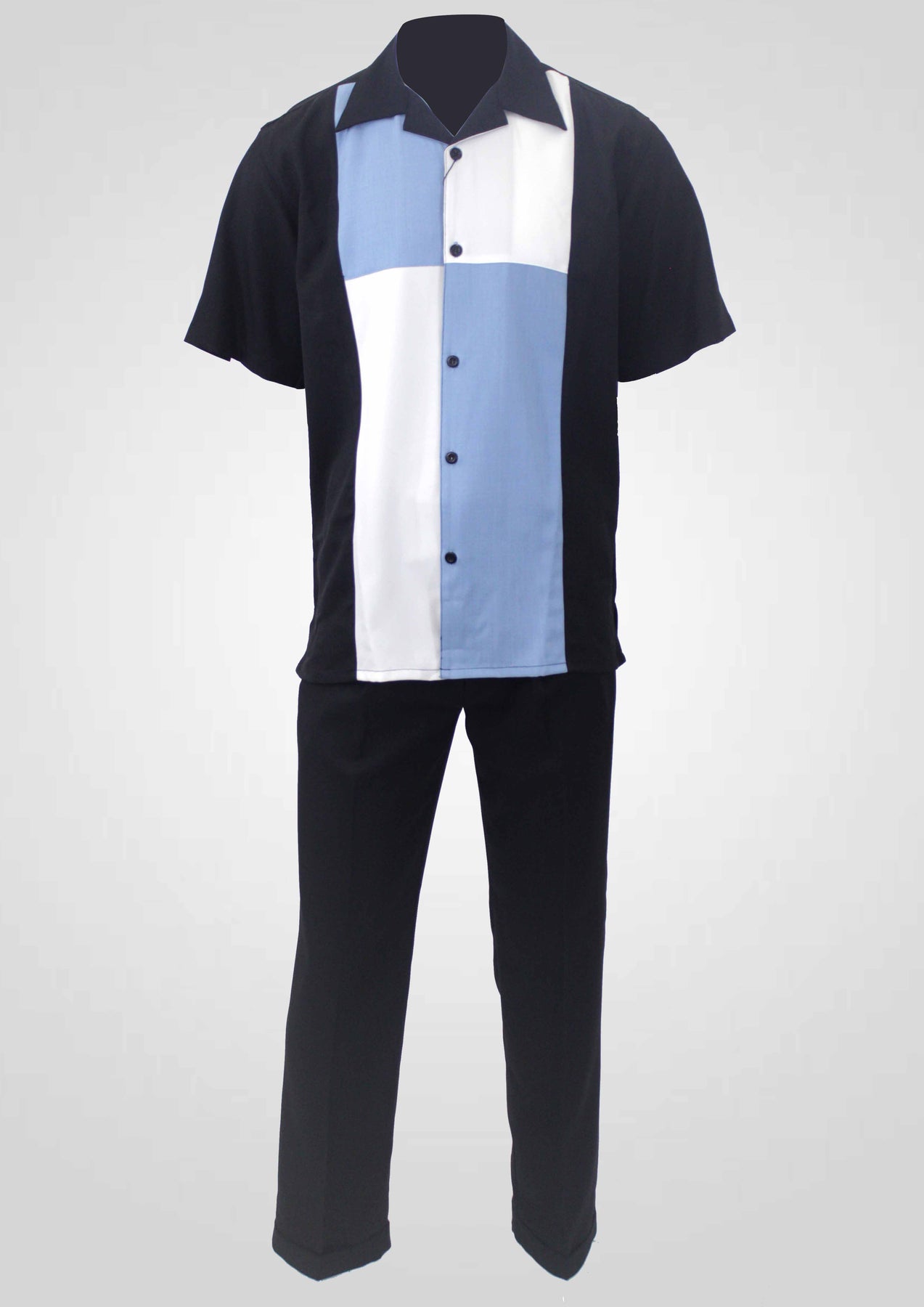 MONTIQUE,COLOR BLOCK-PAJAMAS COLLAR-ETHNIC-SETS-2301-B-CAROLINA/BLUE