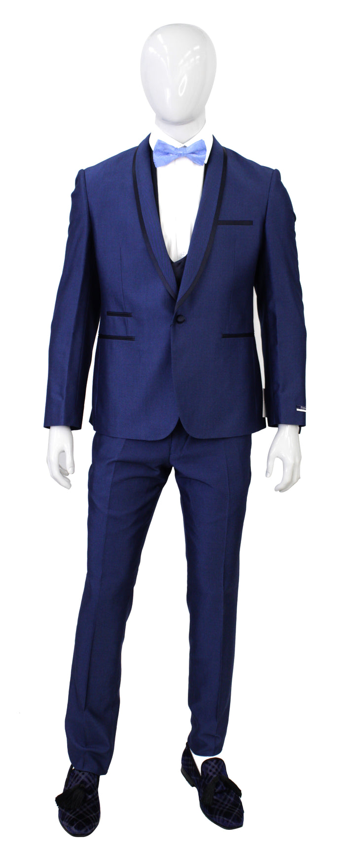 Portabella Solid Slim Fit Tuxedo Suit with Black Compose Shawl Lapel is a stylish and elegant tuxedo that is perfect for weddings, proms, and other special events. The suit is made from high-quality fabrics and has a slim fit that is flattering to most body types. The jacket has a shawl lapel, a single-breasted button closure, and two side pockets. The pants have a slim fit and a single button closure. The suit comes with a matching vest.
